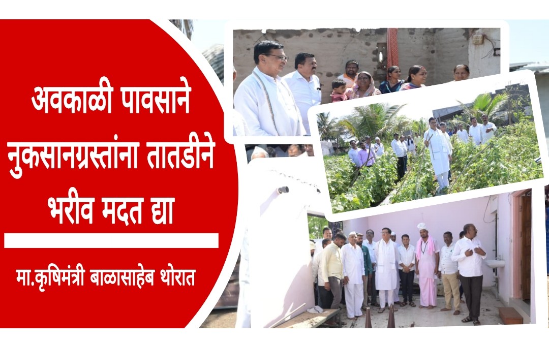 काल अचानक आलेल्या अवकाळी पावसाने मोठे नुकसान झाले. यानंतर लोकनेते बाळासाहेब थोरात यांनी तातडीने आपल्या यंत्रणेला संबंधित शेतकऱ्यांना मदतीच्या सूचना दिल्या याचबरोबर फोनद्वारे अनेक शेतकऱ्यांची संपर्क साधला. बाळासाहेब देशमाने व रामहरी कातोरे यांनी तातडीने विविध भागांची पाहणी करून नागरिकांना दिलासा दिला. त्यानंतर आज सकाळीच शेतकऱ्यांच्या बांधावर जाऊन काँग्रेस नेते बाळासाहेब थोरात यांनी नुकसानीची पाहणी केली.