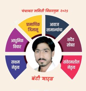 पारदर्शक प्रशासन: लोकांच्या हितासाठी पारदर्शक आणि प्रभावी प्रशासन सुनिश्चित करते. सर्व कार्यामध्ये उत्तरदायित्व ठरवून, सेवांच्या वितरणात सुधारणा केली जाते.बंटी यादव याचे ध्येय ग्रामीण विकास,समावेशकता,आर्थिक सक्षमीकरण,आणि सामाजिक न्याय सुनिश्चित करून एक समृद्ध आणि सशक्त ग्रामीण समाज निर्माण करणे आहे.