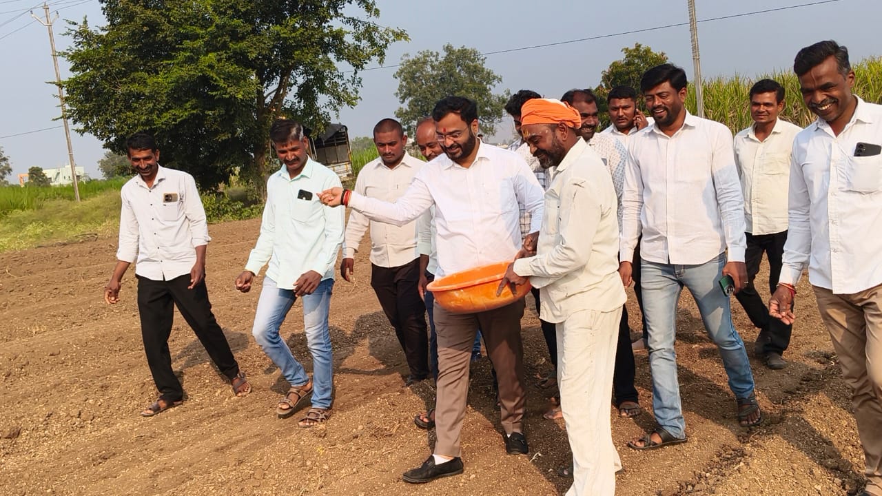 शेतकरी कष्टाला मान देणारा आणि जमिनीशी नाळ जपणारा राजकारणी नेता म्हणून ओळख असलेलेआमदार अमोल खताळ यांनी चक्क आपल्या गाडीतून खाली उतरून शेतकऱ्यांच्या हातातील गहू बियाण्याची टोकरी घेऊन स्वतः शेतात गहू फुकत आपण ही एका सर्वसामान्य शेतकऱ्याचा मुलगा असल्याचे प्रत्यक्ष कृतीतून दाखवून दिले